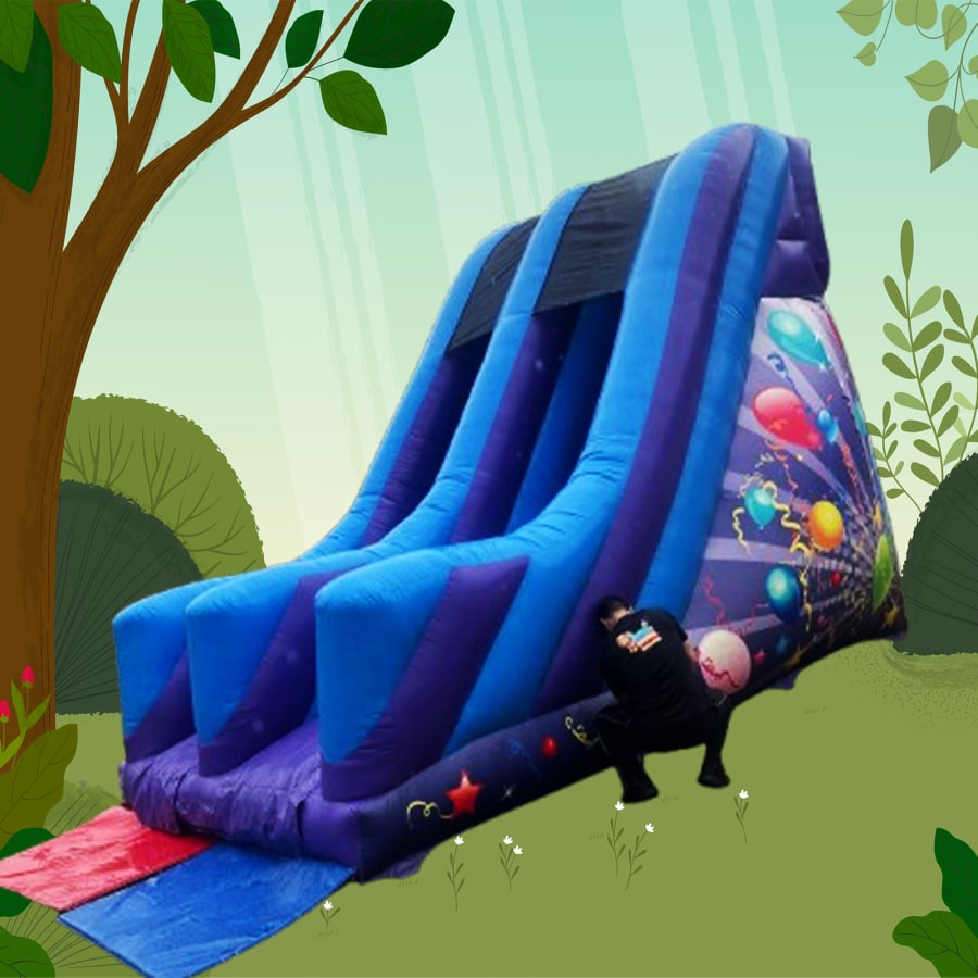 Looking for inflatable slide hire, Blue and Purple 10 ft Platform Slide in Burton, Derby, Barton, Turbury, Swadlincote? We have you covered! Our dedicated team delivers, sets up, and collects the slide, ensuring a stress-free and enjoyable experience for you and your guests. Our local service guarantees prompt delivery and reliable support for events of any size.