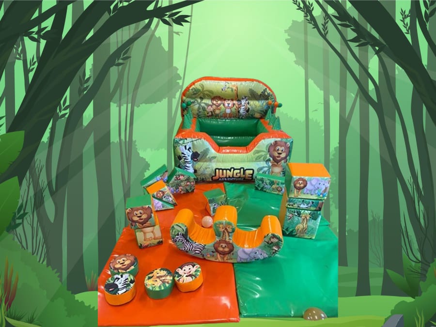 Our Jungle Bronze Package is perfect for little ones who may be too small for our Bouncy Castles but still want to have a roaring good time at their party. 🦁 This package includes a vibrant Green and Orange Jungle themed Ballpool, along with a 17 pc Soft Play set that will provide hours of endless fun and entertainment. 🐡🐯