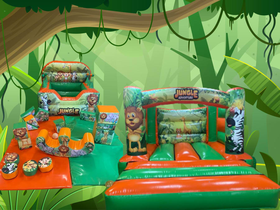 Introducing our Jungle Gold Package, the perfect addition to any party or event in Burton, Derby, Barton, Tutbury, Alrewas, Hatton, Hilton, Newborough, Swadlincote, Repton, Church Gresley, Castle Gresley, Linton, and surrounding areas. This exciting package includes our vibrant and colourful Green and Orange Jungle-themed Bouncy Castle, a ball pool, and a 17-piece soft play set. It's everything you need to create an unforgettable day of fun and excitement for your guests!